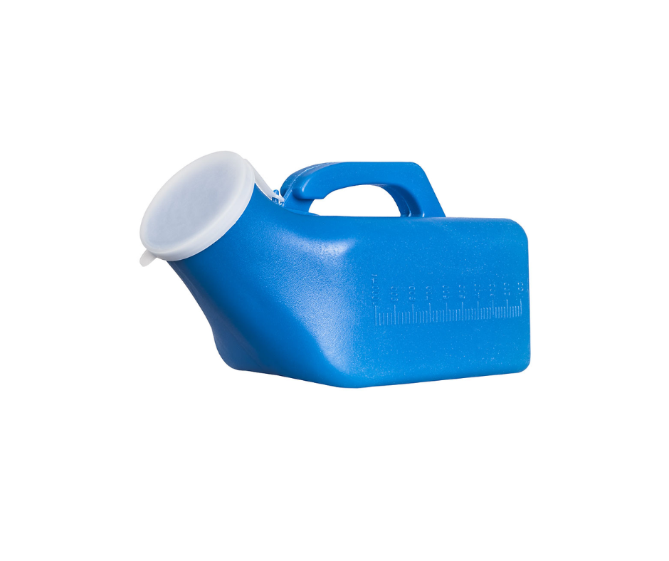 Durable, spill-resistant urinal bottle with easy-grip handle—ideal for bedside use, travel, or home care.